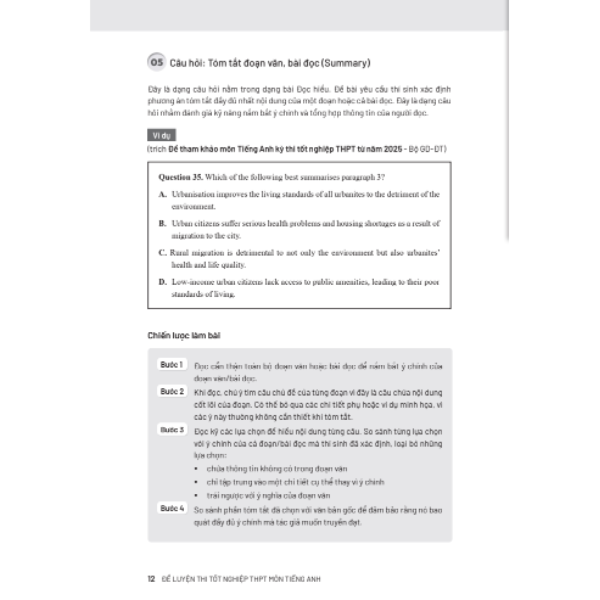 Đề Luyện Thi Tốt Nghiệp THPT Môn Tiếng Anh - Theo Định Dạng Đề Thi Từ 2025 (Trần Thanh Hương, Hoàng Thị Hồng Nhung)NỘI DUNG CHÍNHGiới thiệu tóm tắt: Đề luyện thi tốt nghiệp THPT môn Tiếng Anh là ...