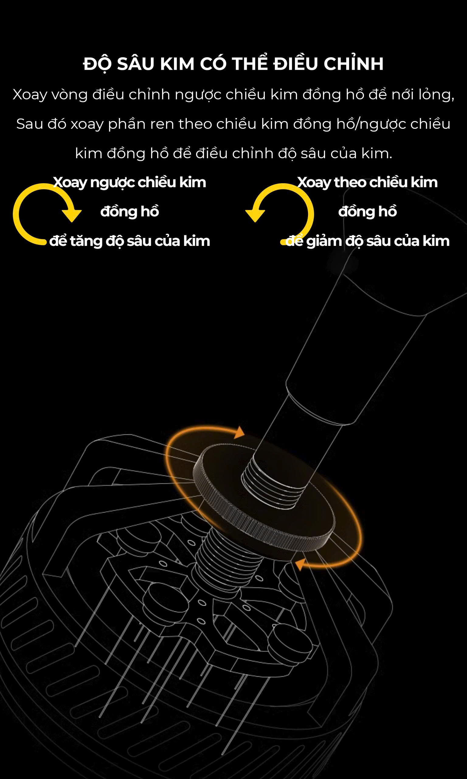 - Kim xoay tán đều bột THOR • Xoắn ốc đều tay – đĩa kim quay tròn khi ấn • Phân bổ bột đồng đều, không vón cục