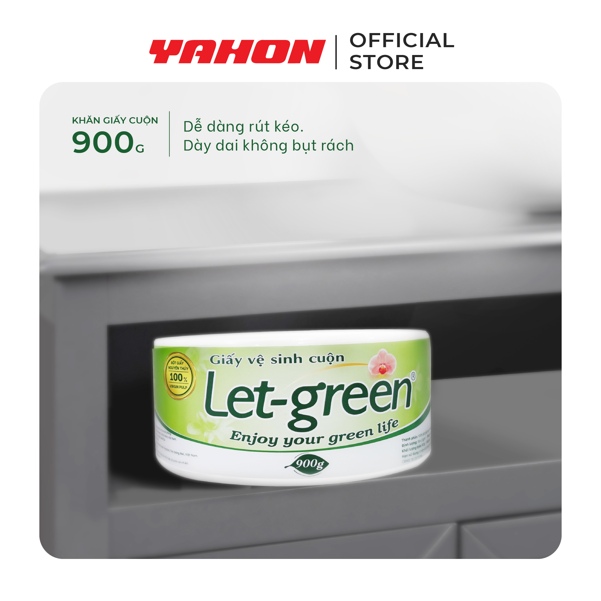 Mua tại TiktokGIẤY VỆ SINH CUỘN LET-GREEN 900G Giấy vệ sinh đa năng Let-green được sản xuất từ nguyên liệu 100% bột giấy nguyên chất, thân thiện và an toàn với người sử dụng. Thành phần: 100% bột giấy nguyên chất. Quy cách: Định lượng: 18 ± 2 gms 10*20 cm/tờ, 900g/cuộn, 10 cuộn/thùng Hạn sử dụng: 3 năm kể từ ngày sản xuất NSX: in trên bao bì