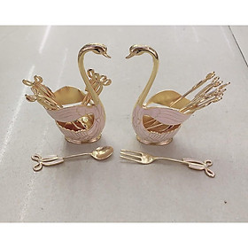 1 giỏ + 6 dĩa 1 giỏ + 6 thìa Giỏ để thìa dĩa thiên nga lòng mạ vàng cao dấp