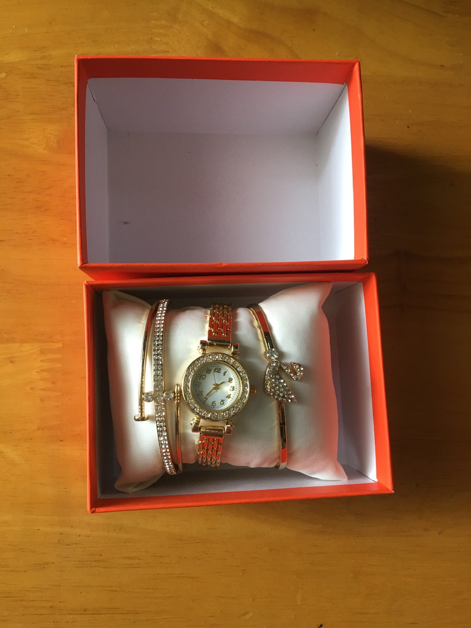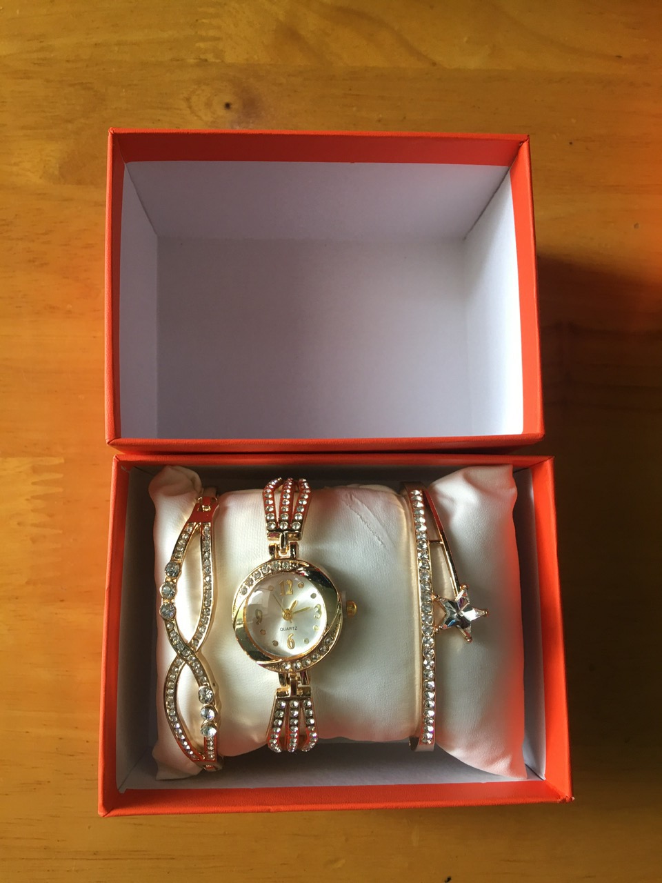_Combo hộp 3 món đeo tay xinh xắn phong cách thanh lịch thời trang sang trọng quý phái cho nữ -Combo hộp đồng hồ 3 món đeo tay xinh xắn , mặt tròn màu trơn