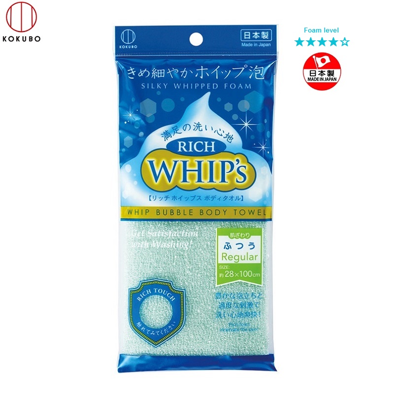 Khăn tắm tạo bọt Whip's Kokubo mềm mịn cao cấp (loại nhiều bọt) - Hàng nội địa Nhật Bản. Chất liệu/Thành phần: Nylon / Polyester mềm mịn, bông xốp với khả năng tạo bọt