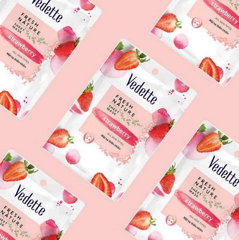 Mặt nạ Thiên nhiên Vedette Dâu tây với sự kết hợp các tinh chất tự nhiên giàu acid trái cây, vi khoáng và vitamins (B, C, E…) giúp “refresh” làn da, se khít lỗ chân lông và giúp da tươi sáng. Sử dụng thường xuyên để có làn da khỏe mạnh từ bên trong.