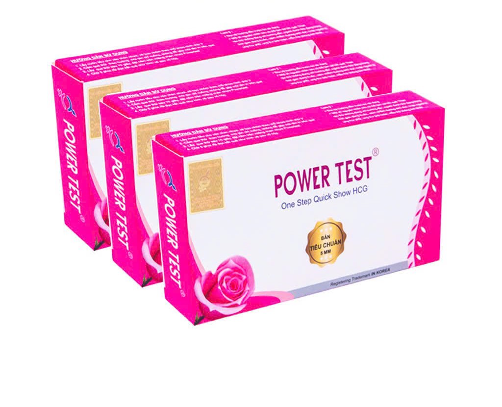 Tên sản phẩm: Que thử thai PowerTest Quy cách: Combo 3 hộp 3 test và 3 cốc Kích thước test: rộng 3mm Tính năng: Phát hiện thai sớm sau 6 -9 ngày trứng rụng ƯU