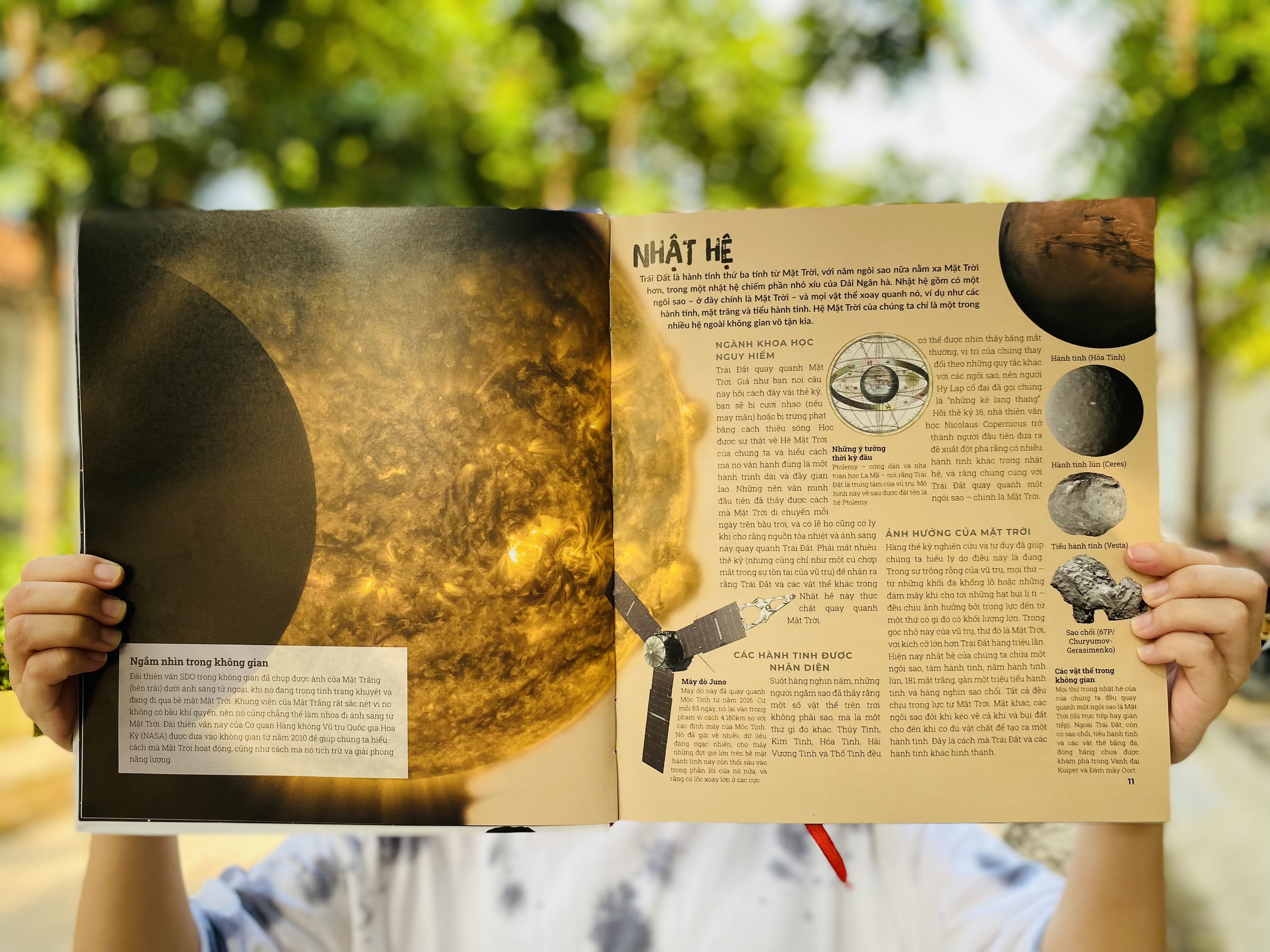 Nội dung gồm 4 phần được phân tách qua gần 70 chủ đề để giải đáp toàn diện cho con về không gian – vũ trụ: