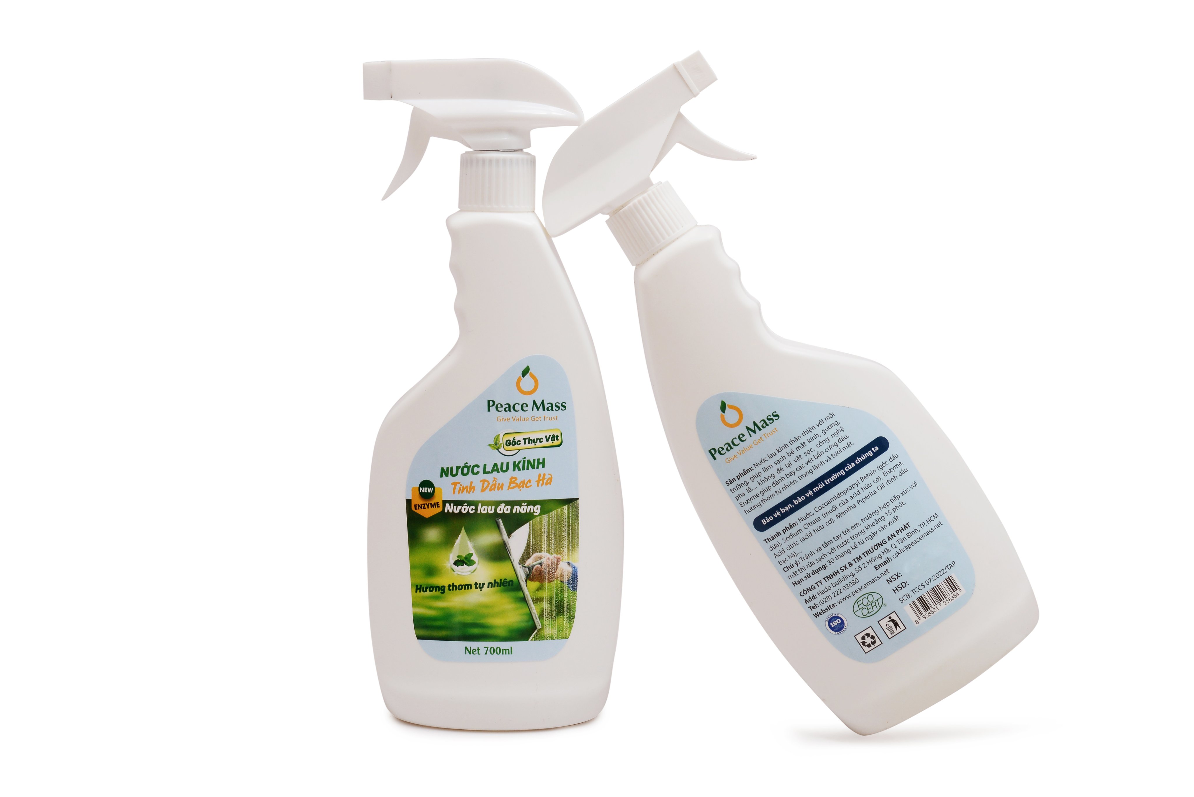 Thông tin sản phẩm - Tên sản phẩm: Nước lau rửa toilet Peace Mass Tihh dầu Quế - Nước lau kính Tinh dầu Bạc hà Peace Mass - Thể tích: 700ml/Chai xịt - Quy