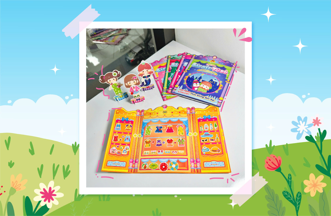 Trò chơi Sắp xếp tủ đồ cùng Mika xinh đẹp: thời trang và phụ kiện Nàng Tiên Cá Ưu điểm của bộ sách Nhiều chủ đề thú vị: Khám phá các phong cách như Cô tiên xinh, Mùa đông ấm áp, Nữ sinh trung học, Mùa hè sôi động, và Nàng tiên cá. Sticker dễ thương: Gồm nhiều trang phục và phụ kiện phong phú, giúp bé thoải mái sáng tạo. Bộ tranh công chúa giấy: Dễ dàng tháo gỡ và dán lại, bé có thể thay đổi trang phục cho Mika bất cứ lúc nào. Khuyến khích sự sáng tạo: Bé được tự do thiết kế, kết hợp các bộ trang phục theo ý thích. Thích hợp cho mọi độ tuổi: Giúp phát triển tư duy và khả năng phối hợp, tạo nên những giờ phút vui vẻ và ý nghĩa. Hướng dẫn cách chơi Lật mở ra các bạn sẽ thấy 1 tờ Chính là tủ đồ và 2 tờ chi tiết đi kèm 1 tờ là những stickers trang phục và phụ kiện, các bạn nhỏ sẽ gỡ các sticker đó và dán sắp xếp lên tủ đồ cho Mika nhé 1 tờ khác là tranh công chúa giấy, các bạn nhỏ sẽ gỡ ra và ghép, dán những bộ trang phục và phụ kiện cho Mika theo sở thích của mình Lưu ý Hãy bảo quản các sticker và tranh giấy để sử dụng nhiều lần. Khuyến khích bé thể hiện sự sáng tạo và kể câu chuyện về trang phục mà bé đã chọn cho Mika! Chúc các bé có những giờ phút vui vẻ và đầy sáng tạo!