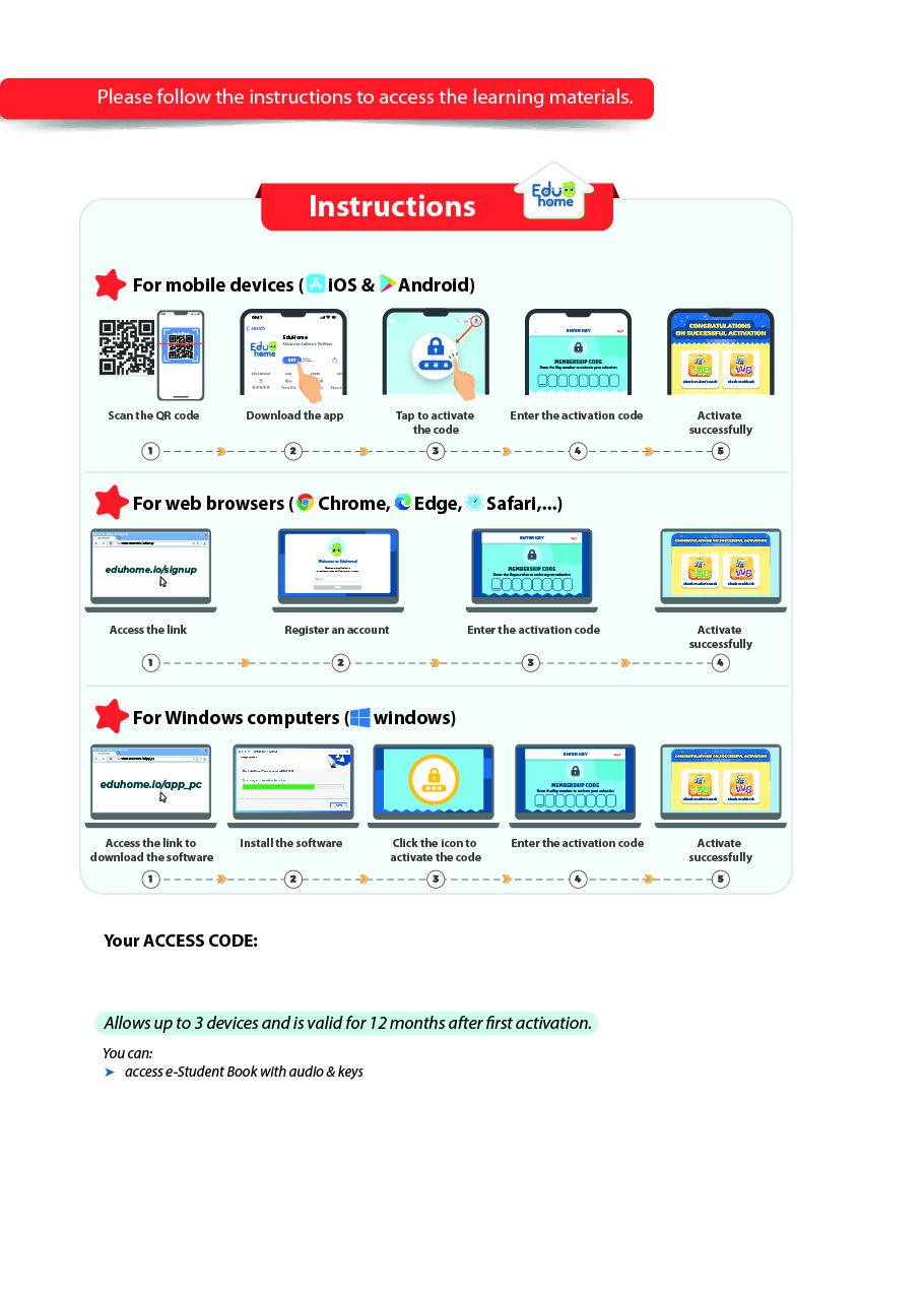 Bản in: Sách truyện có các câu hỏi trước, trong khi và sau khi đọc, thuật ngữ, bài tập từ vựng ôn tập và kịch bản Theatre Time