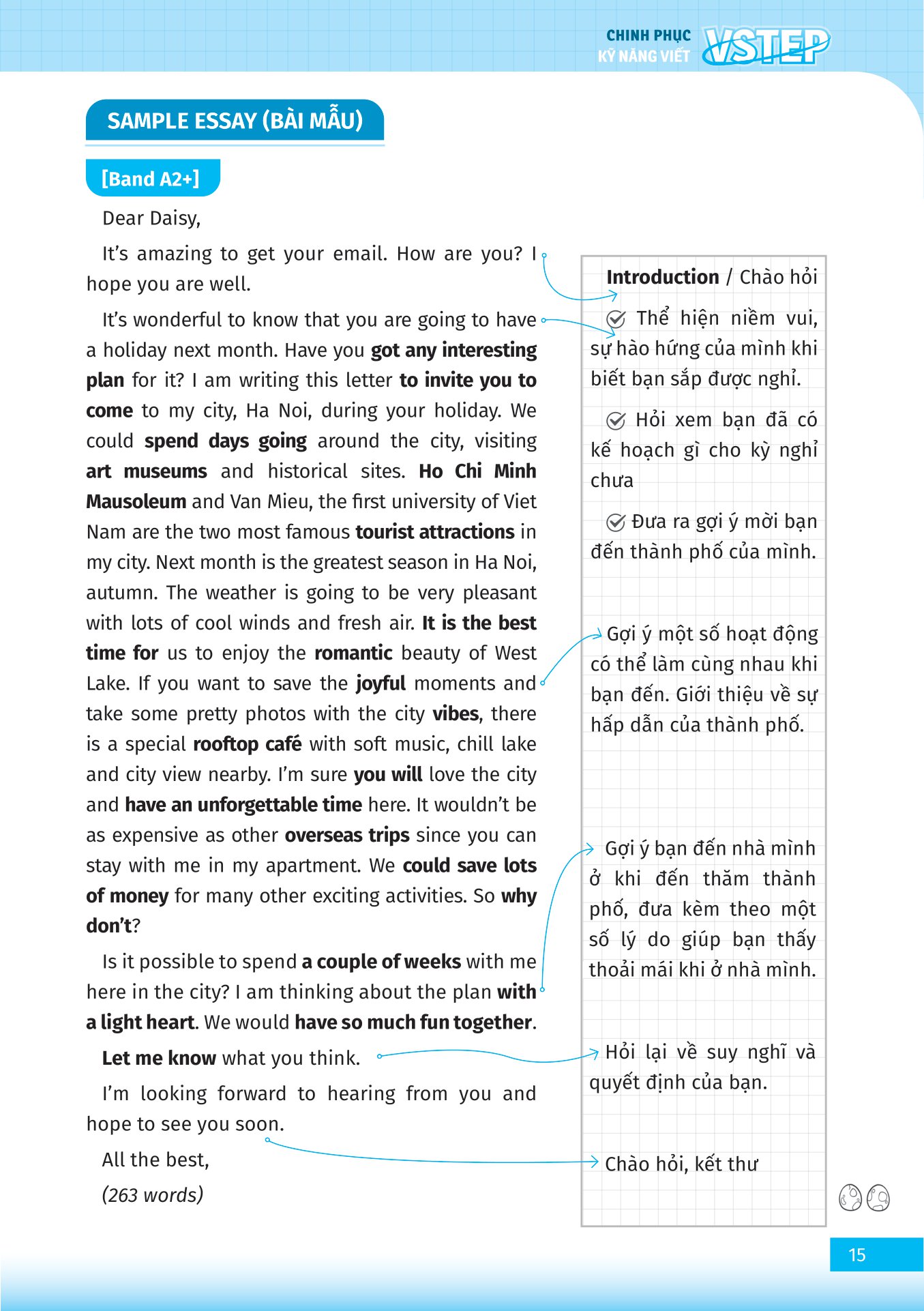 Cuốn sách được chia thành 10 bài học, mỗi bài học tập trung vào 1 chủ đề người học thường gặp trong kì thi VSTEP. Trong đó, mỗi chủ đề được chia thành 3 phần: