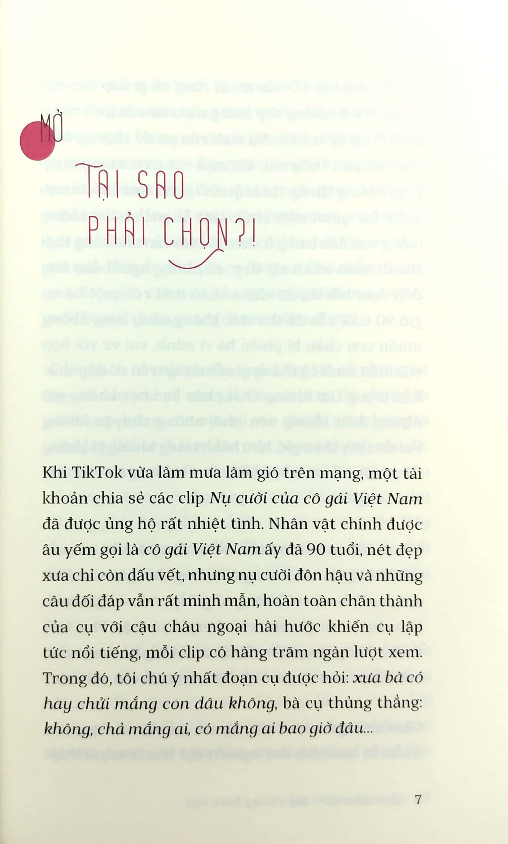 “Cuốn sách này tôi muốn dành tặng tất cả những bà mẹ có con trai và con gái. Có con trai, thì chúng ta sẽ là mẹ chồng, còn nếu có con gái thì con chúng ta cũng có thể sẽ đi làm dâu một bà mẹ chồng nào đó. Làm thế nào để tất cả những phụ nữ khi cùng yêu thương một người đàn ông sẽ vui vẻ hạnh phúc chứ không phải đứng ở hai chiến tuyến mà hét lên “Mẹ hay vợ, anh hãy chọn đi!”. Tại sao chàng trai ấy phải chọn, trong khi hoàn toàn có thể có cả hai trong yêu thương?”