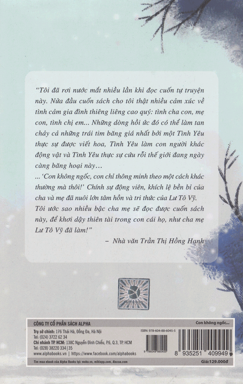 Con không ngốc, con chỉ thông minh theo một cách khác là một cuốn hồi ký thuật lại hành trình trưởng thành của Lư Tô Vỹ, một hành trình kỳ diệu nhất mà cũng chân thực nhất.