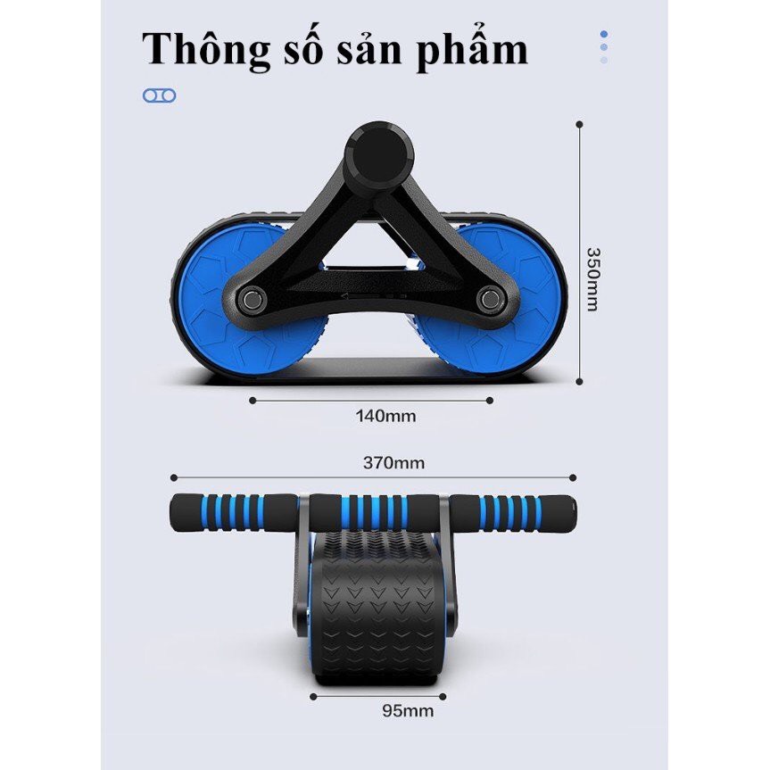 Các thông số kỹ thuật: Con lăn tập bụng 2 bánh cải tiến gấp gọn - Dụng cụ tập bụng : Bánh xe gấp mới cải tiến – gấp gọn dễ dàng mang theo - Khối lượng