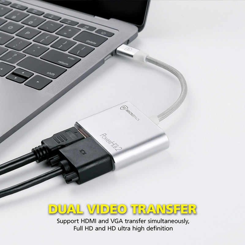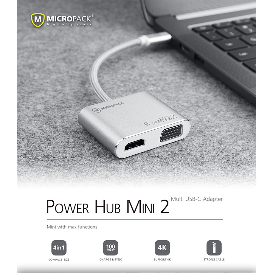 ✨Cổng chuyển đổi MicroPack POWER HUB MINI 2 MDC-4V USB-C To 4 Ports HDMI 4K-60Hz/ VGA FullHD/ USB-C PD 100W/ USB-A Hàng Chính Hãng