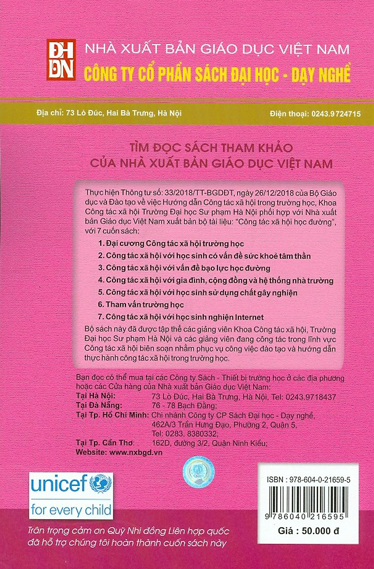 Tên đề tài: Công tác xã hội với gia đình, cộng đồng và hệ thống nhà trường Tác giả: Nguyễn Thanh Bình, Vũ Thị Kim Dung, Nguyễn Thị Mai Hồng, Đặng Thị Huyền Oanh. Khổ sách: 16 x 24 Năm tái bản: 2020 Đơn vị in phát hành: Công ty CP Sách Đại học - Dạy nghề Nhà xuất bản: NXBGDVN