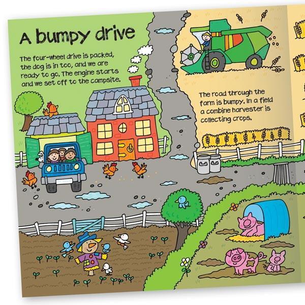 This multi-purpose convertible book engages young kids with its adventurous story and delightful illustrations. Read the short story with your child about a family trip to a campsite and the different landscapes they have to drive through. Then, they can play on the illustrated story route, designed as a forest scene, with their own toys. All before pretending to drive the vehicle themselves!
