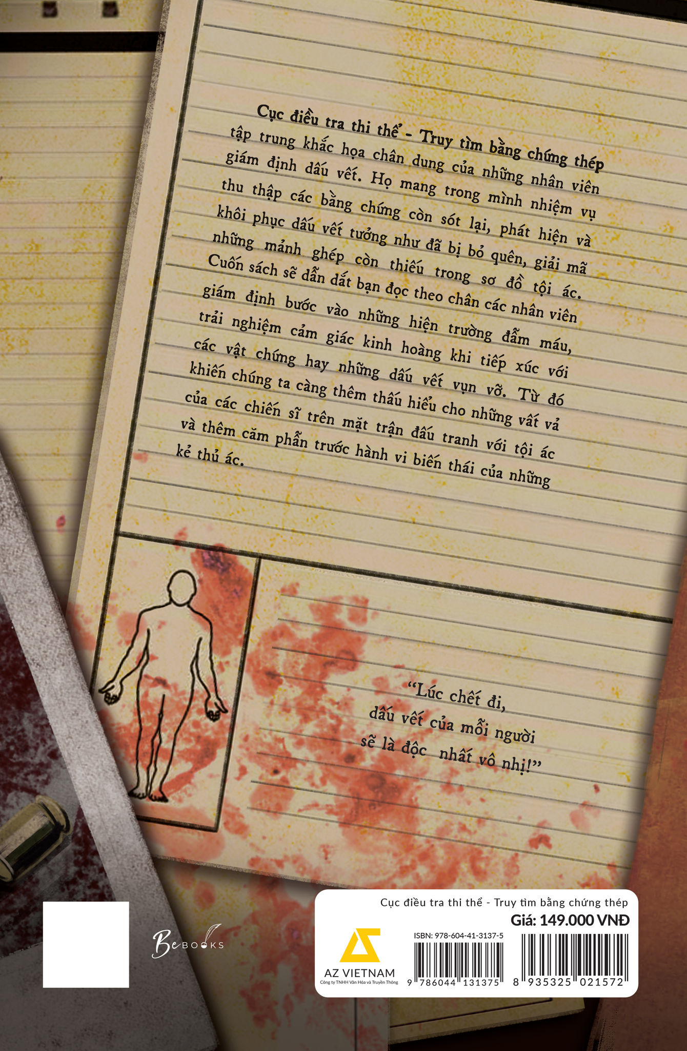 Nếu từng ấn tượng với bộ phim “Bằng chứng thép”, chắc chắn bạn sẽ không thể bỏ qua cuốn sách này. Vậy bạn đã sẵn sàng để trở thành một điều tra viên trong “Cục điều tra thi thể - Truy tìm bằng chứng thép”? Hãy cùng nhau khám phá những hiện trường man rợ, vạch trần kẻ thủ ác và bắt chúng phải đền tội.
