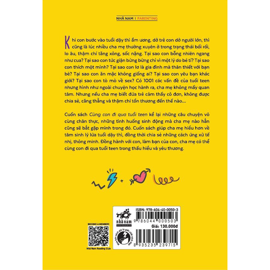 Cuốn sách Cùng con đi qua tuổi teen kể lại những câu chuyện vô cùng chân thực, những tình huống sinh động mà cha mẹ nào hẳn cũng sẽ bắt gặp mình trong đó. Cuốn sách giúp cha mẹ hiểu hơn về tâm sinh lý lứa tuổi dậy thì, đồng thời chia sẻ những cách ứng xử tế nhị, thông minh. Đồng hành với con, làm bạn của con, cha mẹ có thể cùng con đi qua tuổi teen trong thấu hiểu và yêu thương.