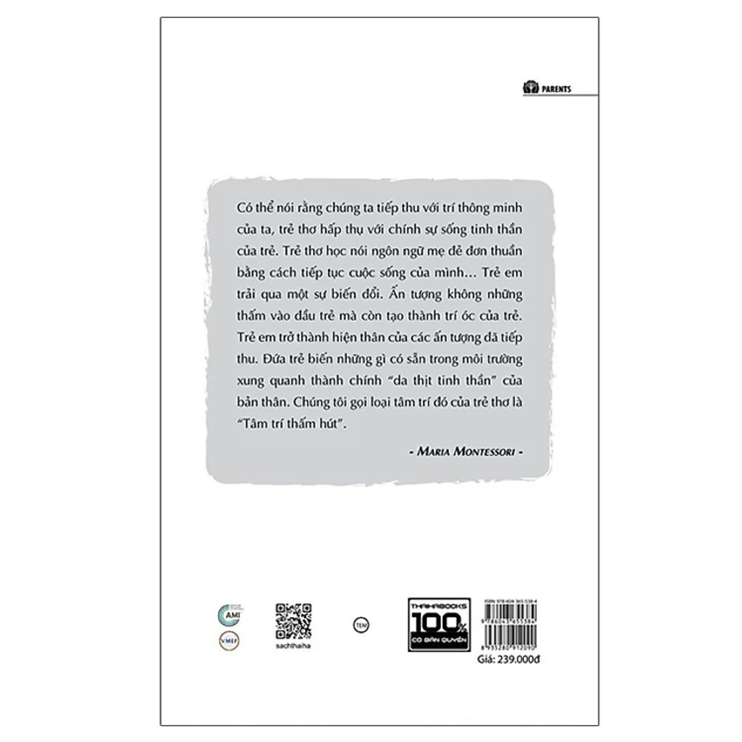Trong quyển sách này, bác sĩ Montessori không chỉ chiếu rọi ánh sáng của sự thấu thị sâu sắc lên hiện tượng ở thời kỳ sớm nhất nhưng lại là thời kỳ tiên quyết nhất trong đời sống con người, dựa trên sự quan sát tường tận và đánh giá đúng đắn, mà còn chỉ ra trách nhiệm của người lớn đối với nó.
