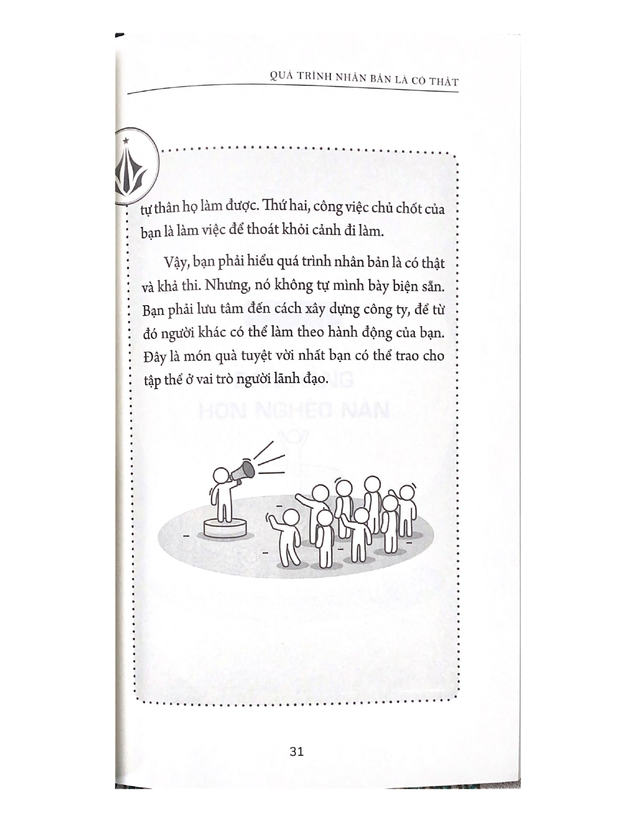 Cuốn sách ra đời từ nhiều năm “xương máu” nơi “chiến trường” kinh doanh của tác giả. Vì thế, nó chứa đựng tất cả những điều cốt lõi nhất về kỹ năng lãnh đạo, và có thể thay đổi ngoạn mục quan điểm của bạn về vấn đề này. Rồi bạn sẽ nhận ra lãnh đạo không phải là “chỉ tay năm ngón”, mà đó là nghệ thuật “thần thánh” trong việc xây dựng con người và tác động đến tập thể.