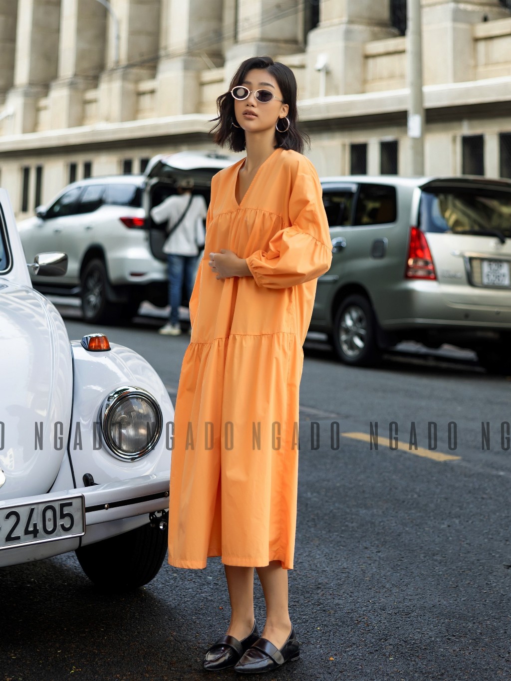 ✨Đầm babydoll cam dài tay NGADO , đầm nữ , Đầm suông , Đầm phom rộng