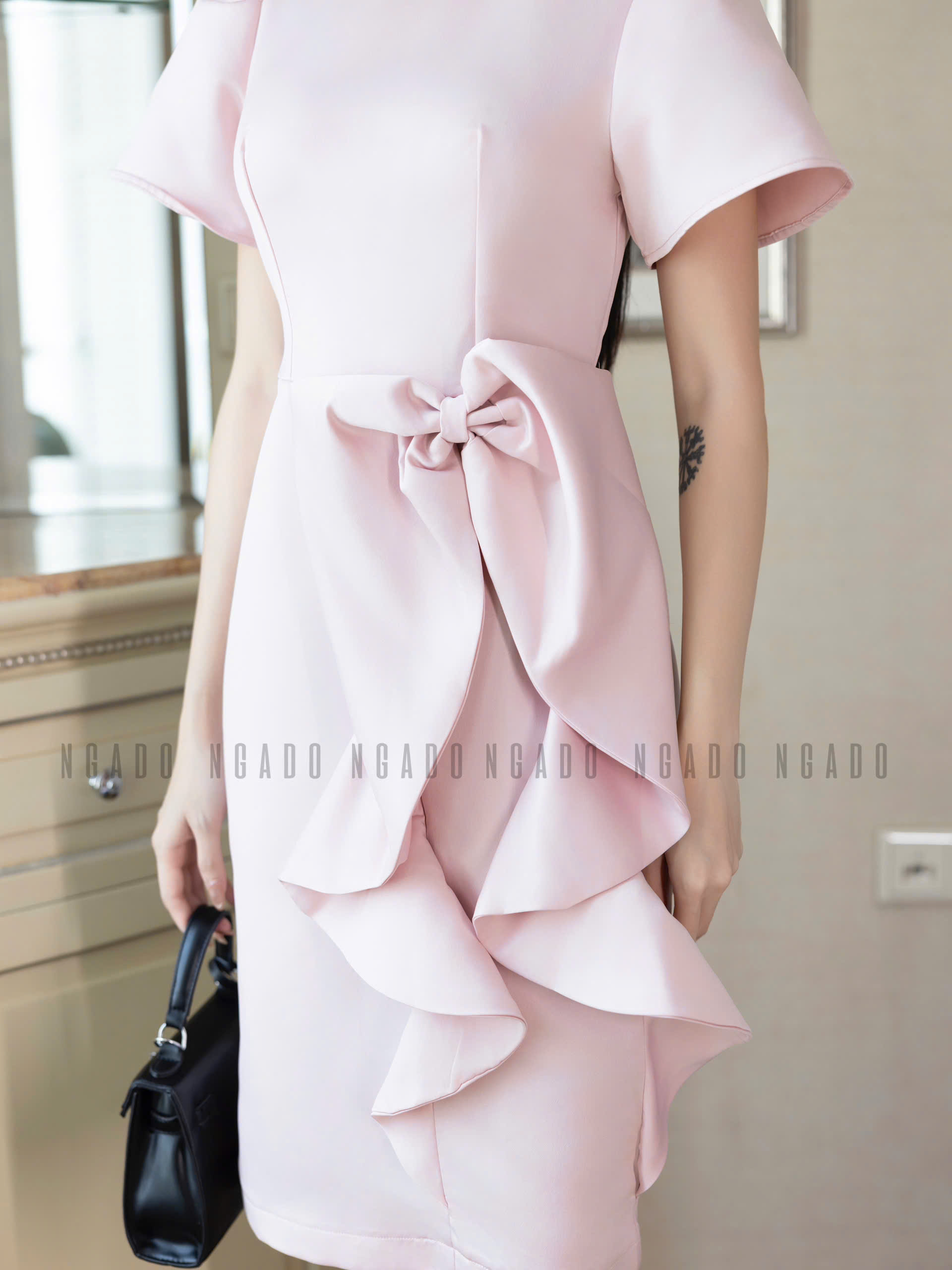 ✨Đầm hồng tay loe NGADO , Đầm dự tiệc sang chảnh , Đầm thiết kế