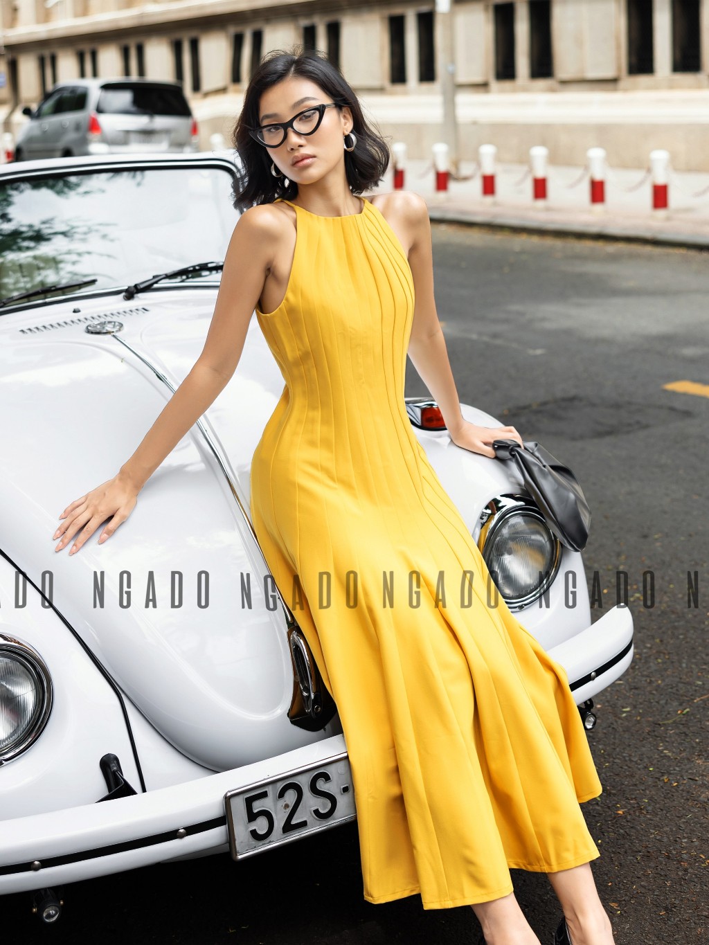 ✨Đầm vàng cổ yếm NGADO, Đầm xòe hở vai, Đầm dự tiệc, Đầm dạo phố