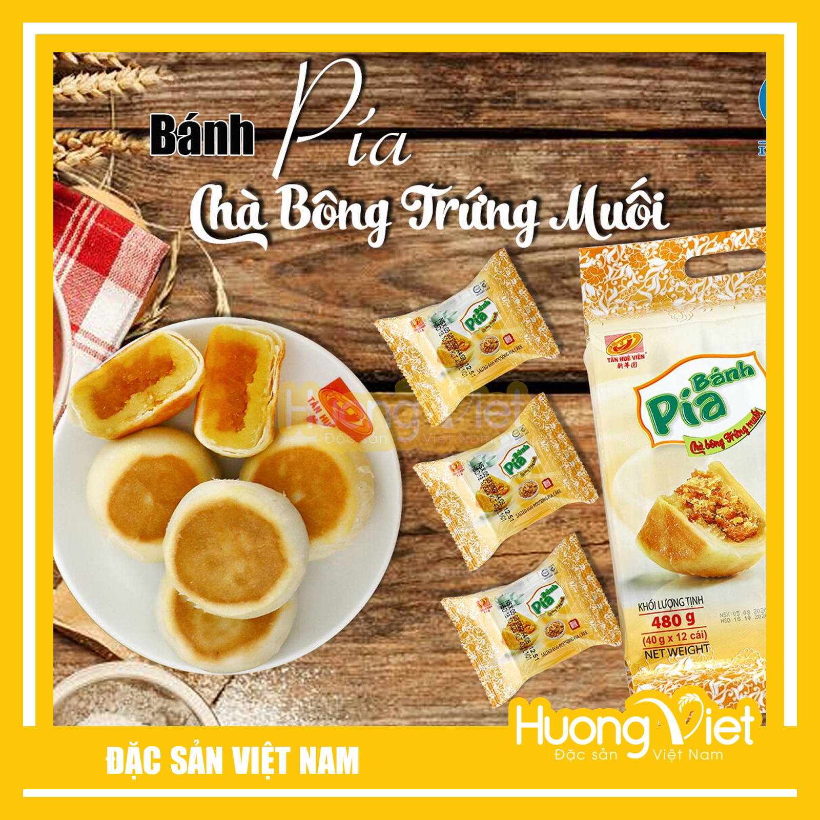 ✨Đặc Sản Sóc Trăng - Bánh Pía Chà Bông Trứng Muối Tân Huê Viên 480G, Bánh Pía Mini Sóc Trăng [Túi 12 Bánh]