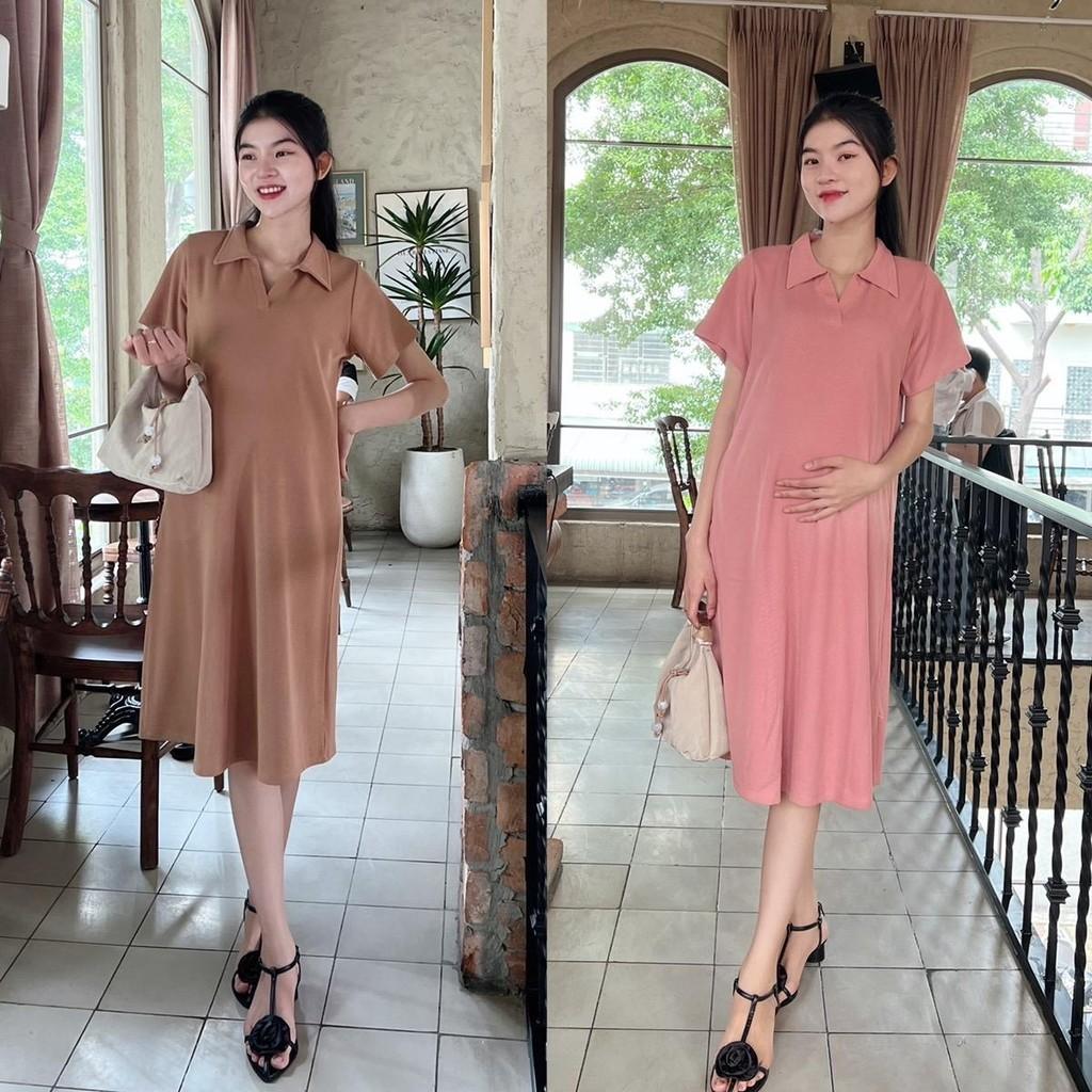 ✨Đầm bầu Polo thun tăm dáng dài trẻ trung, năng động