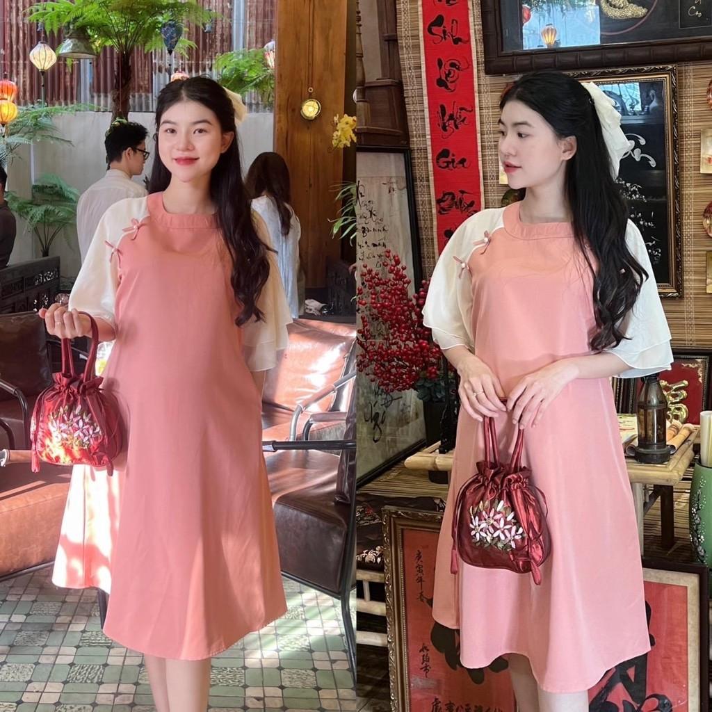 ÔNG TIN SẢN PHẨM: Đầm bầu mặc Tết, dự Tiệc thiết kế kiểu Áo dài cách tân xinh xắn, thanh lịch, sang trọng. Chất vải cotton lạnh mềm mịn, nhẹ mát, thấm hút mồ hôi.