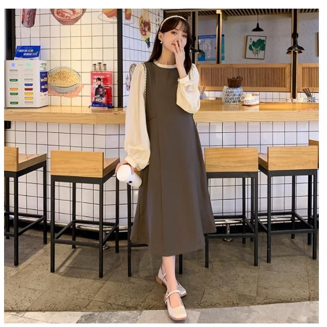 Đầm bầu váy bầu công sở thời trang Hàn Quốc Kích thước 40-59kg Chất liệu da cá Kiểu dáng đầm suông có túi tay dài, đường may đẹp chắc chắn