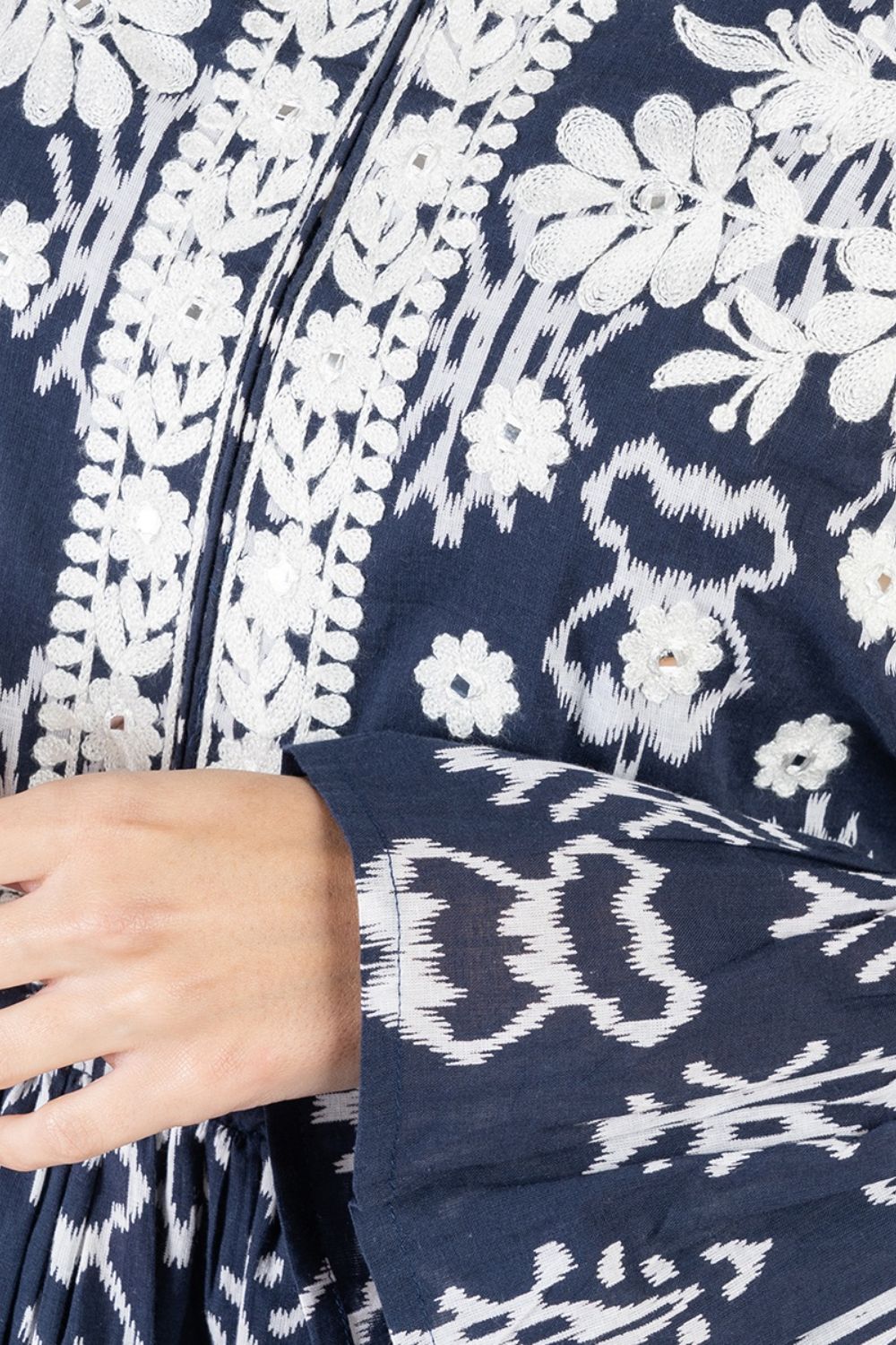 Đầm Sơ Mi Cotton, chất liệu cotton mềm mại, mỏng nhẹ. Phần trước ngực đính hạt tạo hình lá độc đáo. Mặc phối với quần short hoặc legging bên trong. Phom suông. Dài đầm 100cm