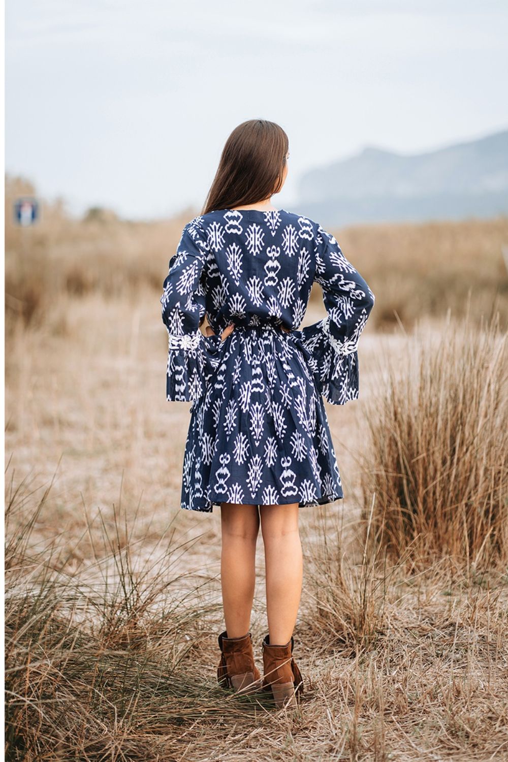 Đầm Boho Dài Tay Isla Bonita, chất lụa cao cấp, mềm mại, thun co giãn ở eo. Phom suông xòe rộng. Dài đầm 90cm (45x90) Phù hợp đi biển, dạo phố, công sở, hoặc dự