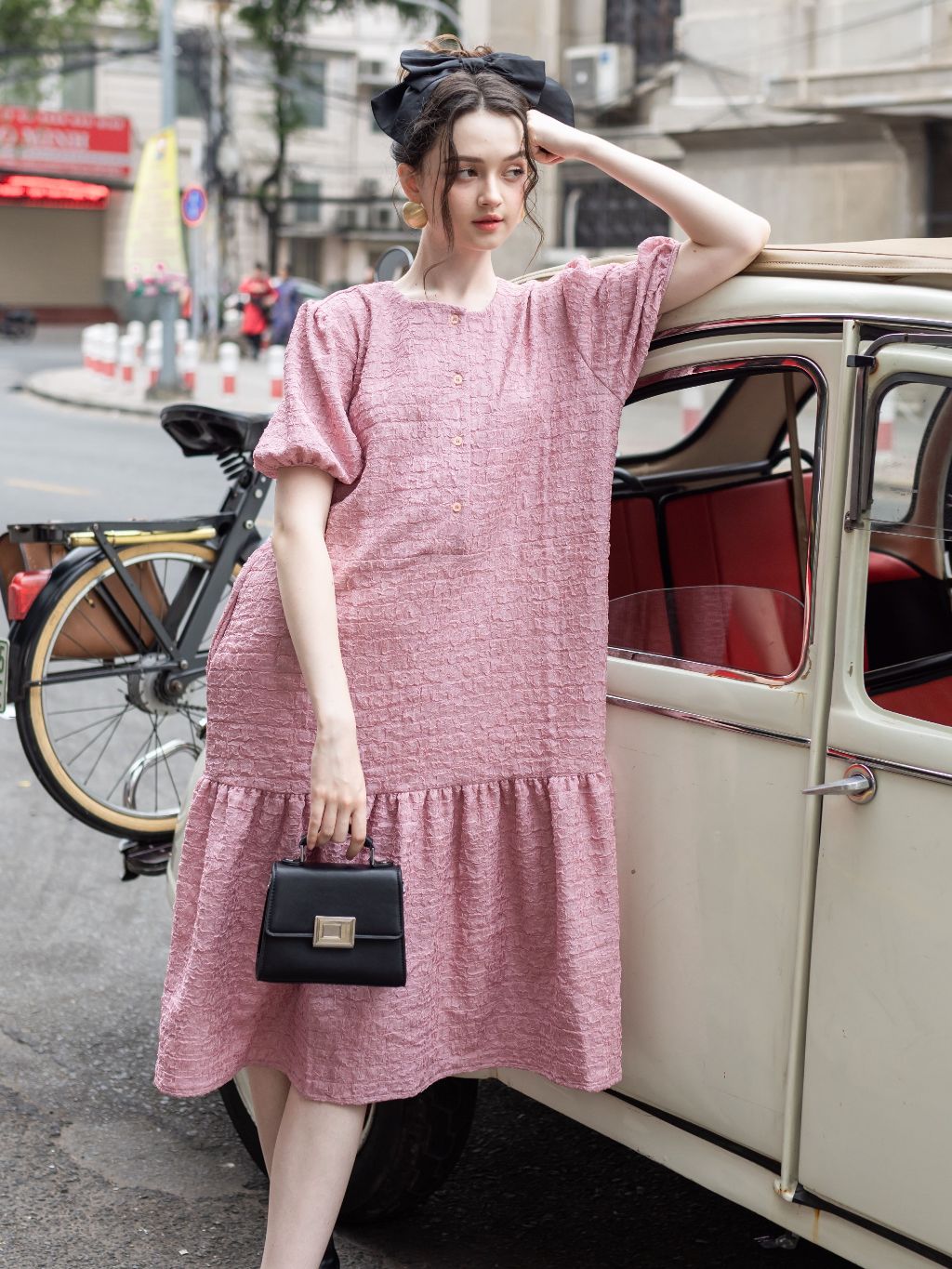 ღ THÔNG TIN SẢN PHẨM: Tên sản phẩm: Đầm hồng sen tay phồng Chất liệu: Chất gân ý Chi tiết sản phẩm: không lót, không túi Thông số size: S, M,