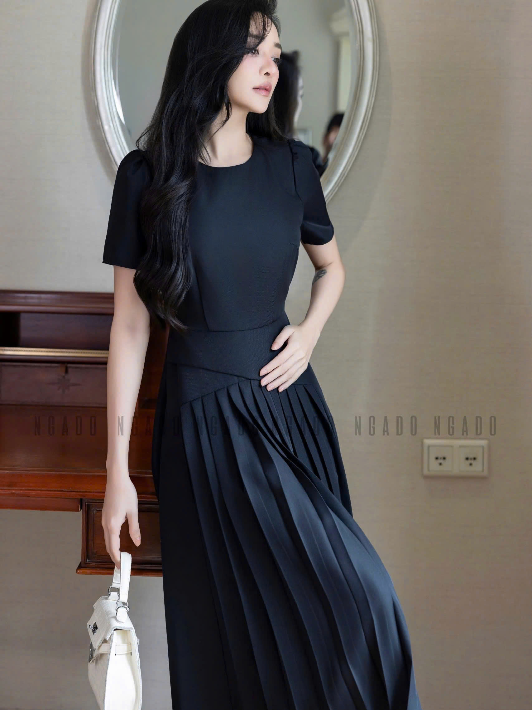 ✨Đầm đen xếp ly cổ tròn NGADO , đầm thiết kế , đầm dự tiệc, công sở