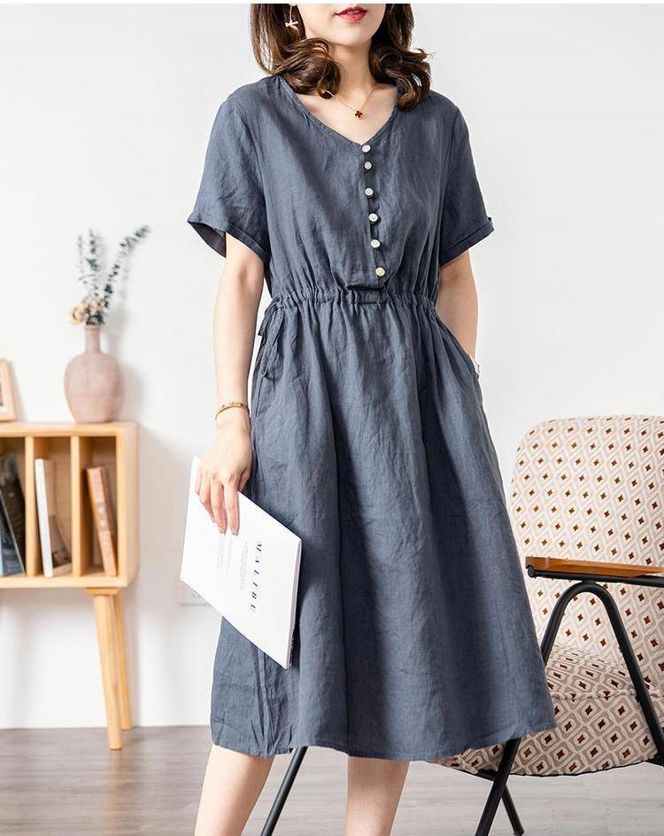 Chất liệu: 100% Linen. Được làm từ cây lanh, loài thực vật cần rất ít nước tưới và giúp thúc đẩy đất đai màu mỡ cũng như đa dạng sinh học. Sợi vải rất thoáng