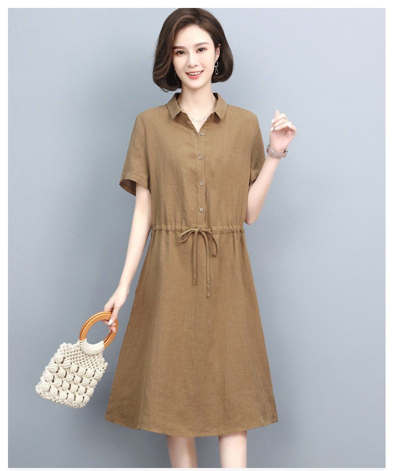 Đầm Sơ Mi Cotton, chất liệu cotton mềm mại, mỏng nhẹ. Phần trước ngực đính hạt tạo hình lá độc đáo. Có túi 2 bên hông, Mặc phối với quần short hoặc legging bên trong.