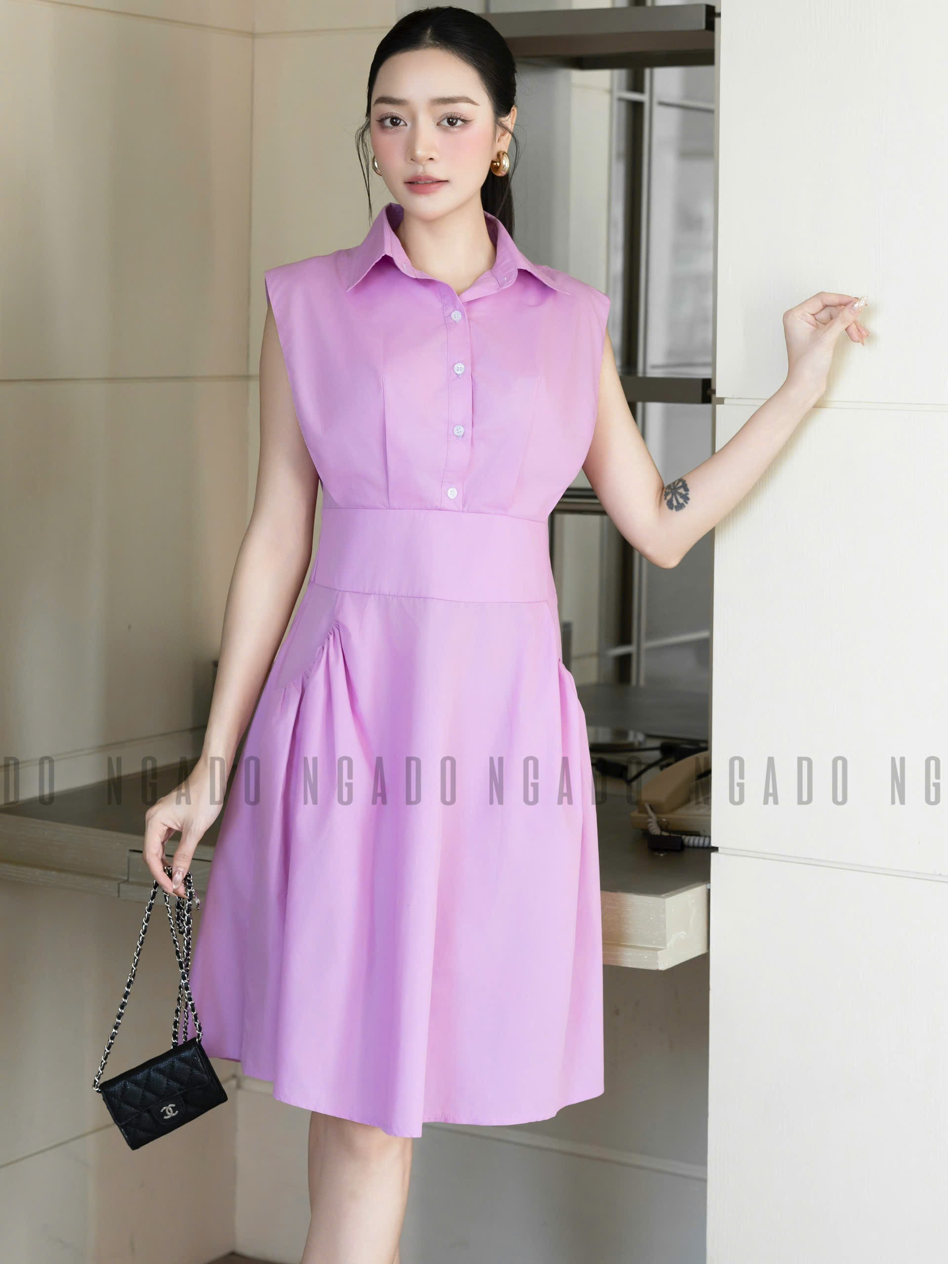 ✨Đầm tím cổ sơ mi NGADO , đầm sơ mi Nữ , đầm công sở