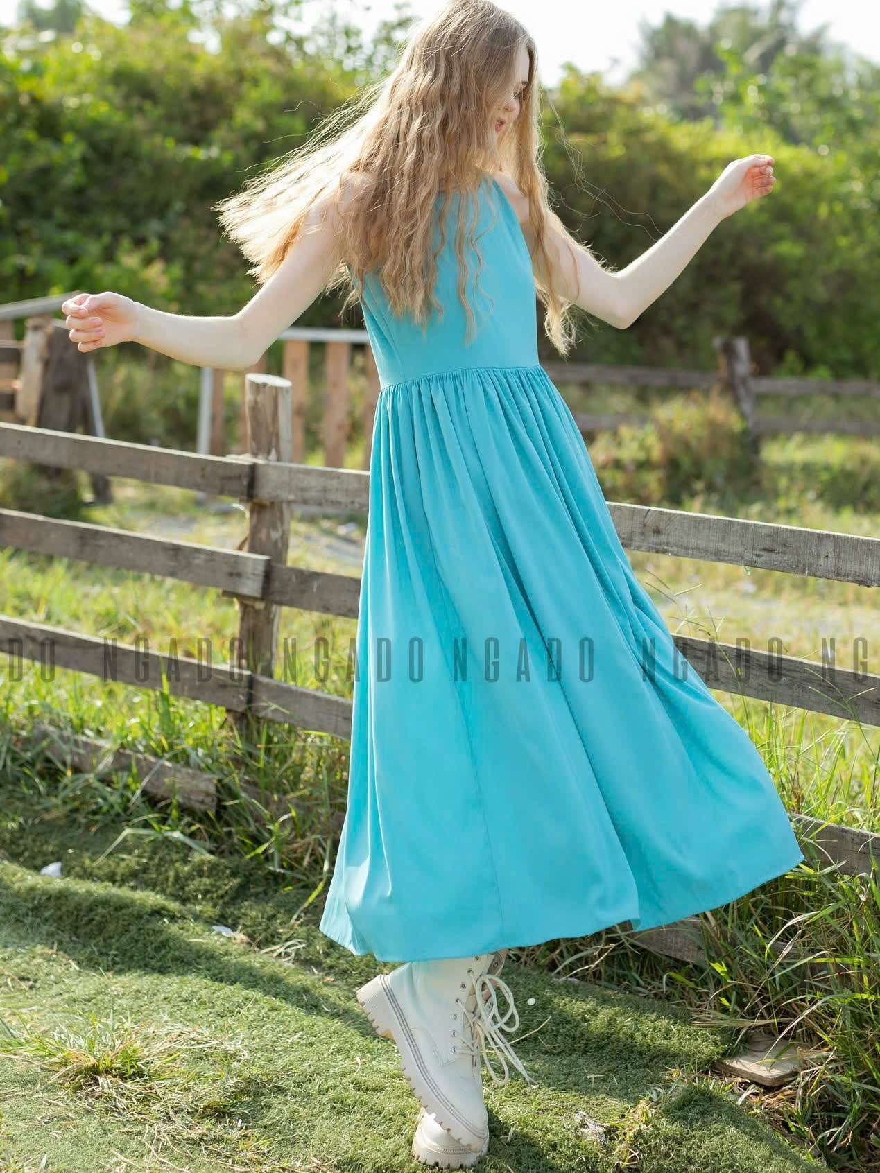 Đầm maxi dáng dài sát nách váy babydoll thiết kế xòe tầng đầm maxi cổ yếm đi biển bầu bí thoải mái