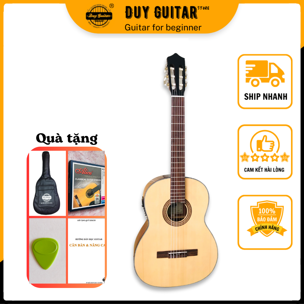 ✨Đàn guitar classic có EQ Duy Guitar DC120X thùng full size có khuyết gỗ Hồng đào nguyên tấm âm thanh tốt