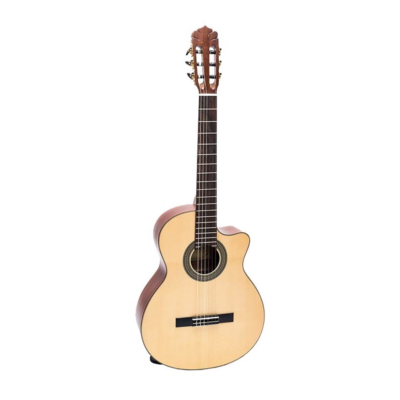 - Hoàn hảo như một cây đàn guitar dây nylon, cây đàn nhẹ này được chế tạo với một đầu đàn Engelmann chắc chắn và mặt sau bằng gỗ gụ để tạo ra một giai