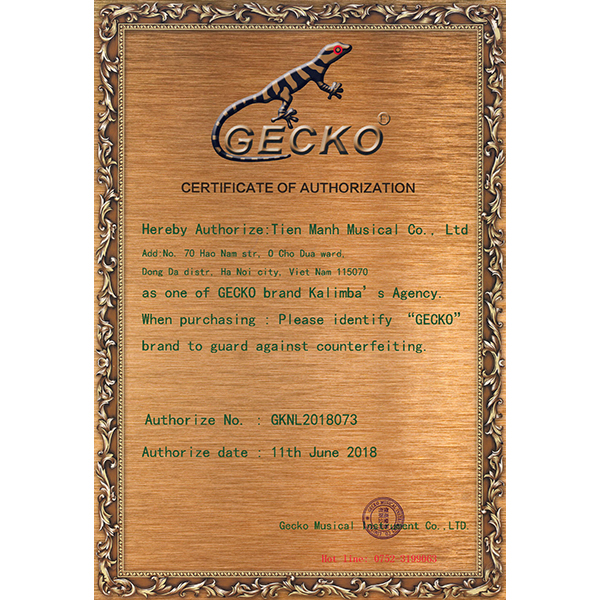 - Mỗi sản phẩm Gecko Kalimba đều có sách hướng dẫn học của April Yang (Dương A Bảo) - nghệ sỹ biểu diễn Kalimba nổi tiếng nhất trên Youtube, và là nghệ sỹ độc quyền của Gecko.