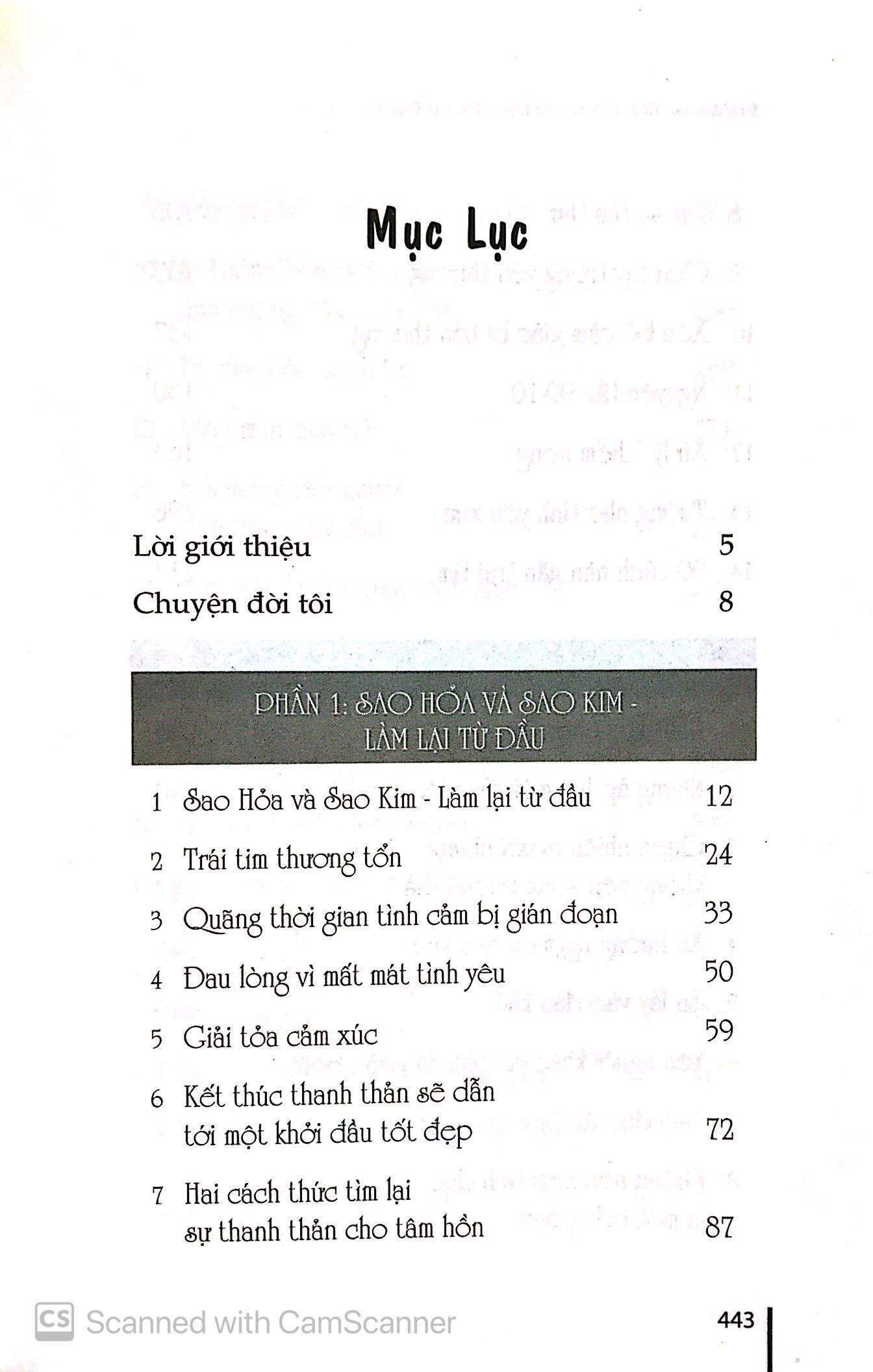 Đàn ông sao Hỏa, Đàn bà sao Kim - Tìm lại tình yêu là cuốn sách viết nên bằng nhiệt huyết của một con tim trăn trở luôn muốn mang đến sự diệu kỳ cho từng mối quan hệ, đồng thời cũng là món quà tác giả muốn gửi đến cuộc đời. Mong rằng nó sẽ hữu ích trong lúc bạn phải đương đầu với những vất vả của trái tim .