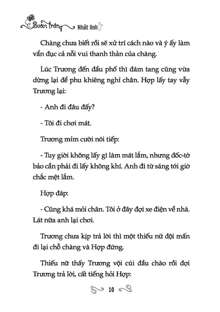 “Vì không còn gì nữa, anh đã tự ý phá hủy đời bỏ học và có bao nhieu tiền anh đem phung phí hết trong các cuộc vui. Anh có thích gì đâu! Nhưng không lẽ cứ chịu ngồi đấy đợi cái chết đến. Ngồi yên cũng không thể được. Anh chỉ có một thân một m.ình, anh không biết lấy ai để an ủi. Có em, có m.ình em thôi, nhưng lại phải xa em ra, cố làm cho em ghét anh…”