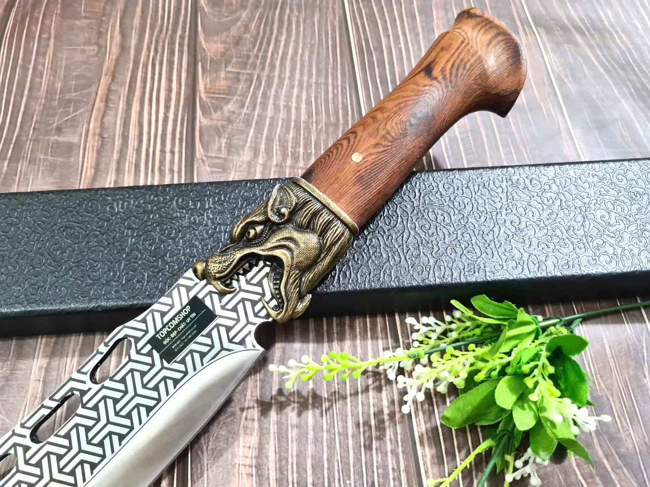 Tên sản phẩm: Dao Phúc Sen, Dao Tông Chặt Cán Gỗ Cẩm - Chất liệu: 100% thép nhíp ô tô được lựa chọn và kiểm duyệt kỹ càng. - Chất liệu cán: gỗ cẩm chỉ