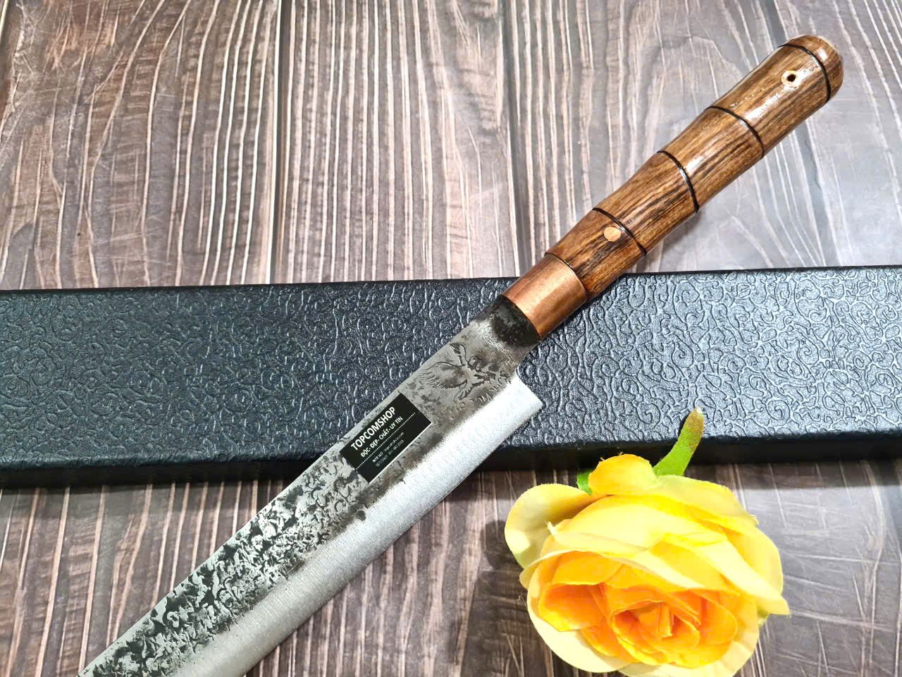 - Mã SP: G10 - Chất liệu: 100% thép nhíp ô tô được lựa chọn và kiểm duyệt kỹ càng. - Chất liệu cán: gỗ cẩm chỉ núi - Kích thước: lưỡi: 22cm, cán: 12cm,