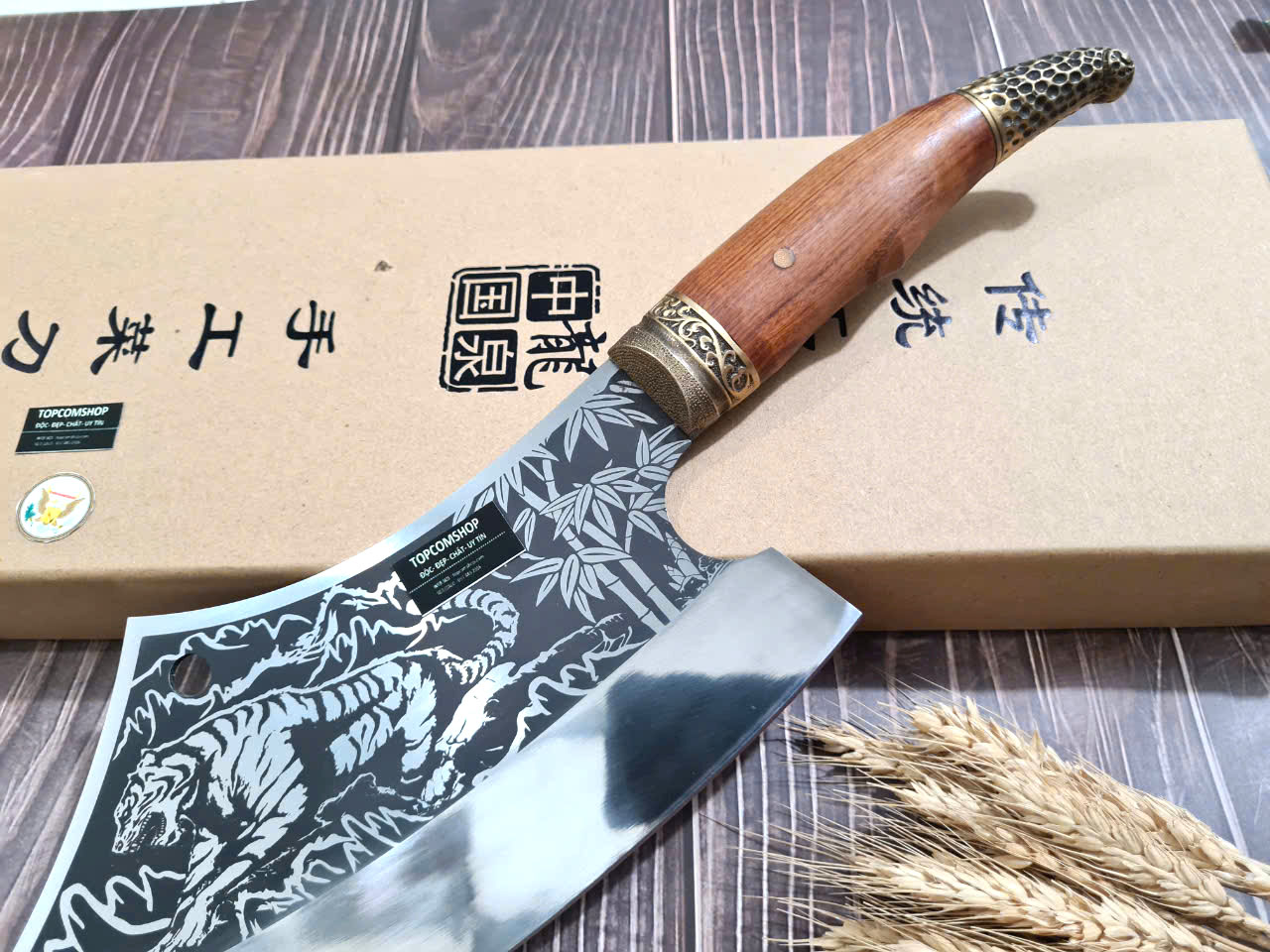Dao Phúc Sen Dao Chặt Xương Cán Cẩm Khâu Đồng Đỏ G06DD - Kích thước: lưỡi: 24cm, cán: 13cm, rộng: 10cm, dầy: 0,5, trọng lượng: 700g - 900g - Chức năng: sử dụng chuyên chặt