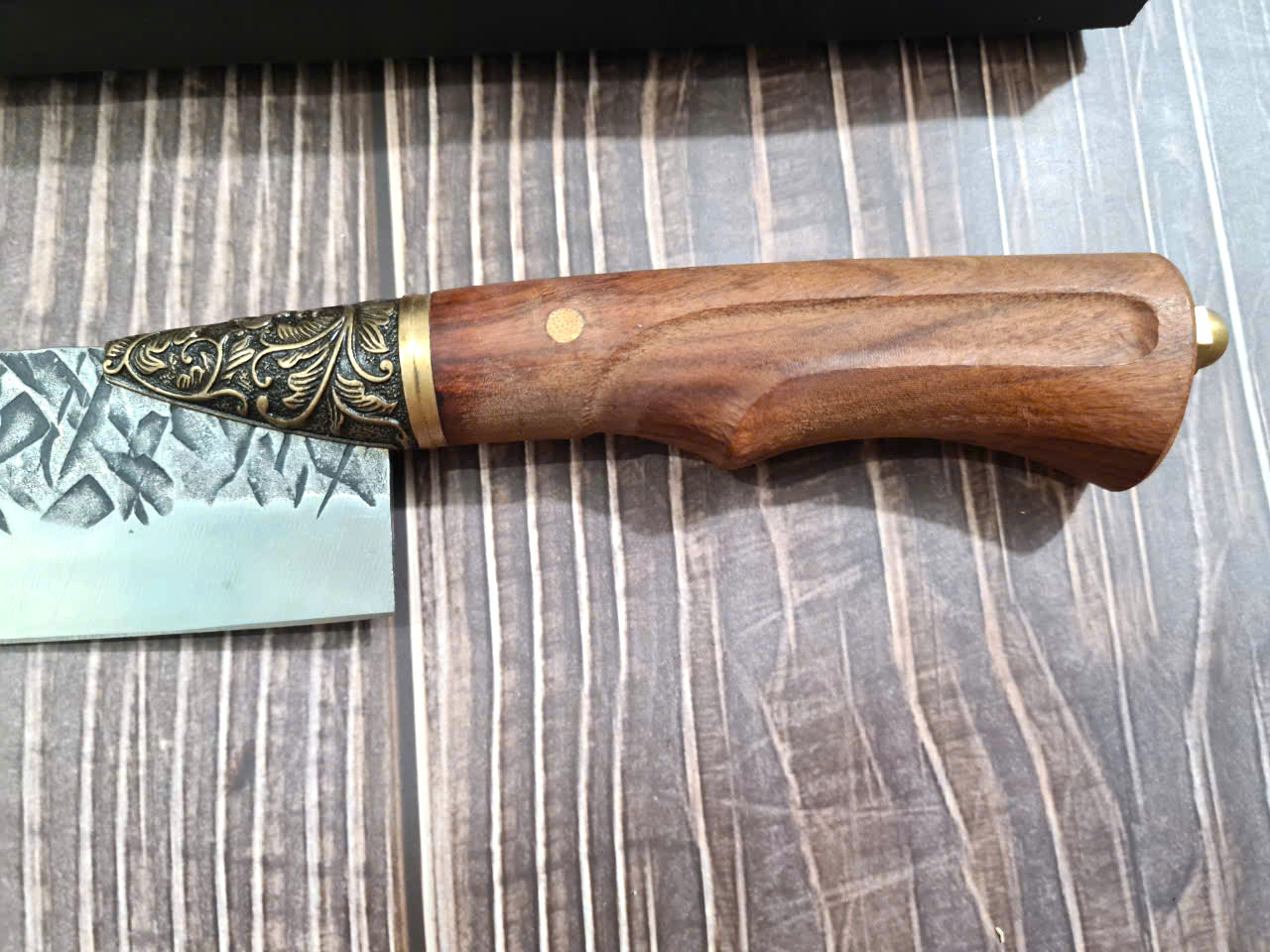 Chất liệu tay cầm: gỗ cẩm lai, khâu và chuôi cuối dao bằng đồng thau