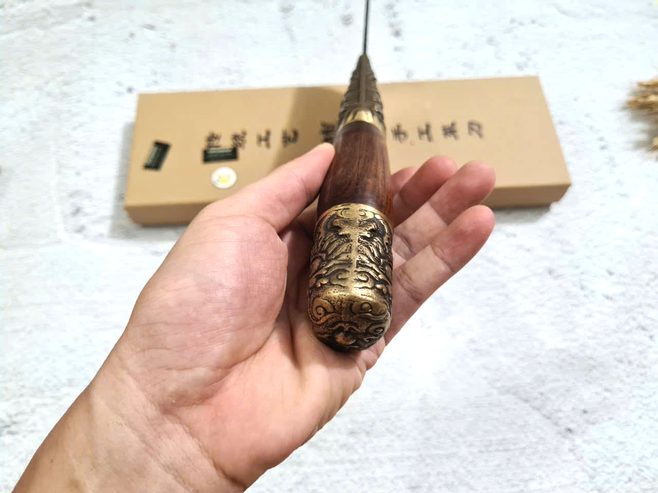 - Chức năng: thái thịt, rau củ quả - Kích thước: Lưỡi: 17cm, cán: 12cm, rộng: 5cm, dầy: 1ly, trọng lượng: 200g - Cán : Gỗ cẩm chỉ, Chốt, Khâu ĐỒNG THAU , keo liên