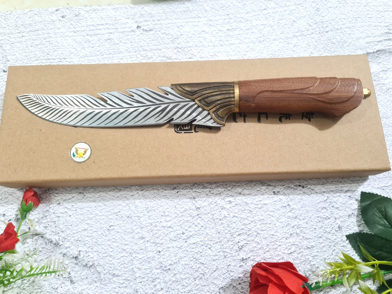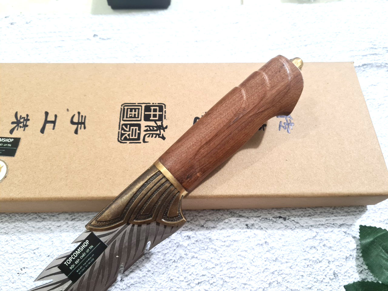 THÔNG TIN SẢN PHẨM TỔNG DÀI : 33cm, LƯỠI: 16.5cm,CÁN: 12cm ,RỘNG : 3,6cm, dày: 2.5mm, CHẤT liệu lưỡi: 7Cr17MOV (thép 7 crom 17 molypden vanadi) Chất liệu CÁN: gỗ cẩm lai, Các phụ kiện ( khâu ) : đồng thau NẶNG : 3 lạng