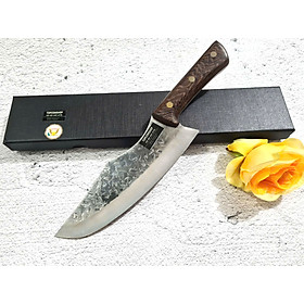 -THÔNG TIN SẢN PHẨM: Chiều dài tổng thể: 29.5cm, Chiều dài lưỡi: 19.5cm ,Chiều rộng lưỡi: 5cm Độ dày: 2.5MM, CHẤT liệu lưỡi: 5Cr15MOV (thép 5 crom 15 molypden vanadi) Chất liệu CÁN: gỗ Cánh gà NẶNG : 2.5 lạng Mặt D dập chìm hoa văn rất đẹp